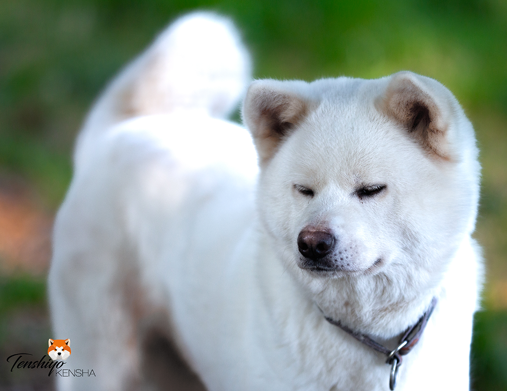 Anzu est notre toute première Akita blanche. C’est après des mois et des mois de recherches que nous l’avons choisi. En effet, les « jolis » Akita blancs, comprenez avec les qualités suffisantes pour un reproducteur, sont encore rares.
